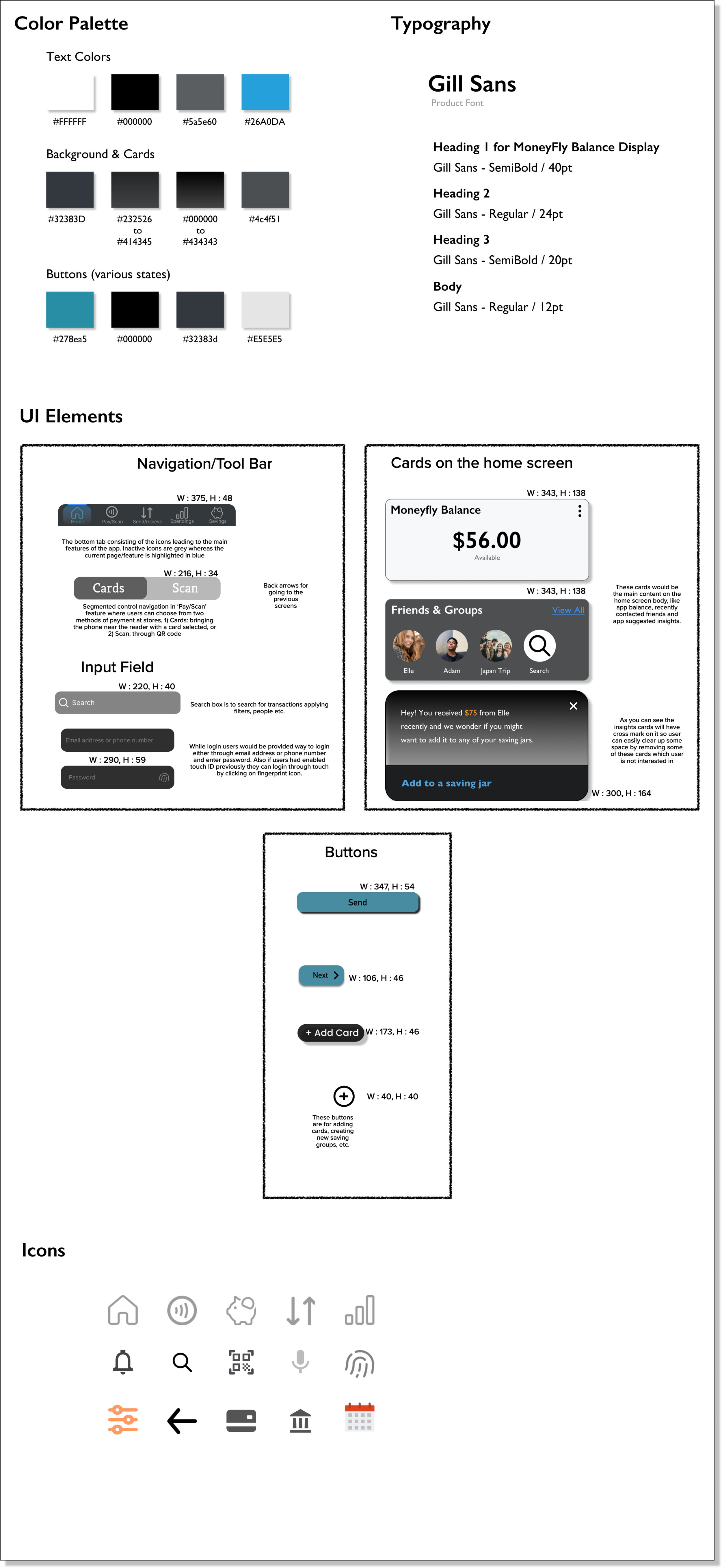 To synthesize all the information I had gathered from the user interviews, I wrote my findings on sticky notes and created an affinity map. By identifying common patterns across my findings, I was able to uncover key insights which helped me understand who MoneyFly’s users are and what they truly need.